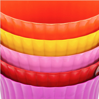 Florero que simula un tulipan abierto. Tambien es usado como cesto papelero.